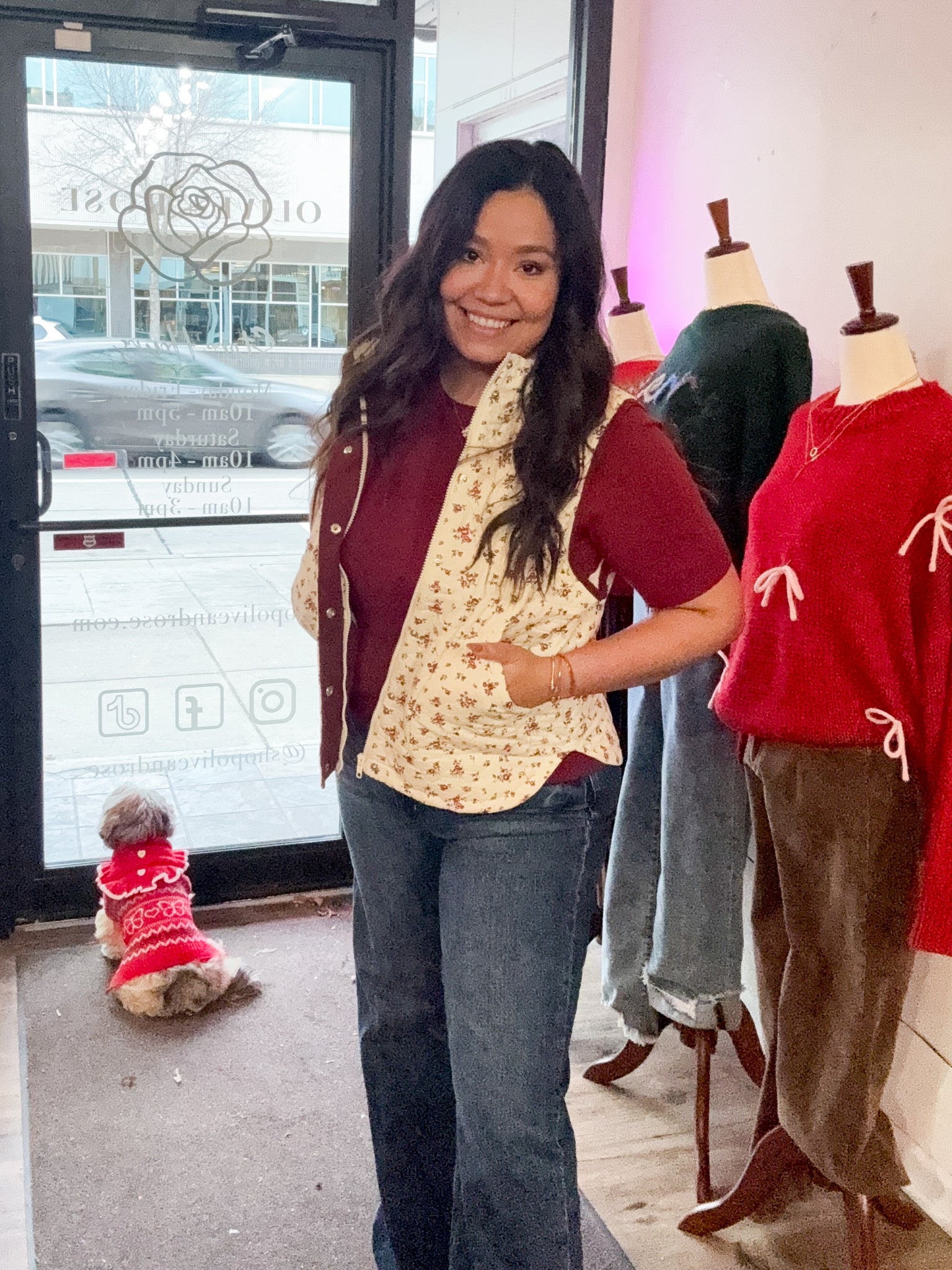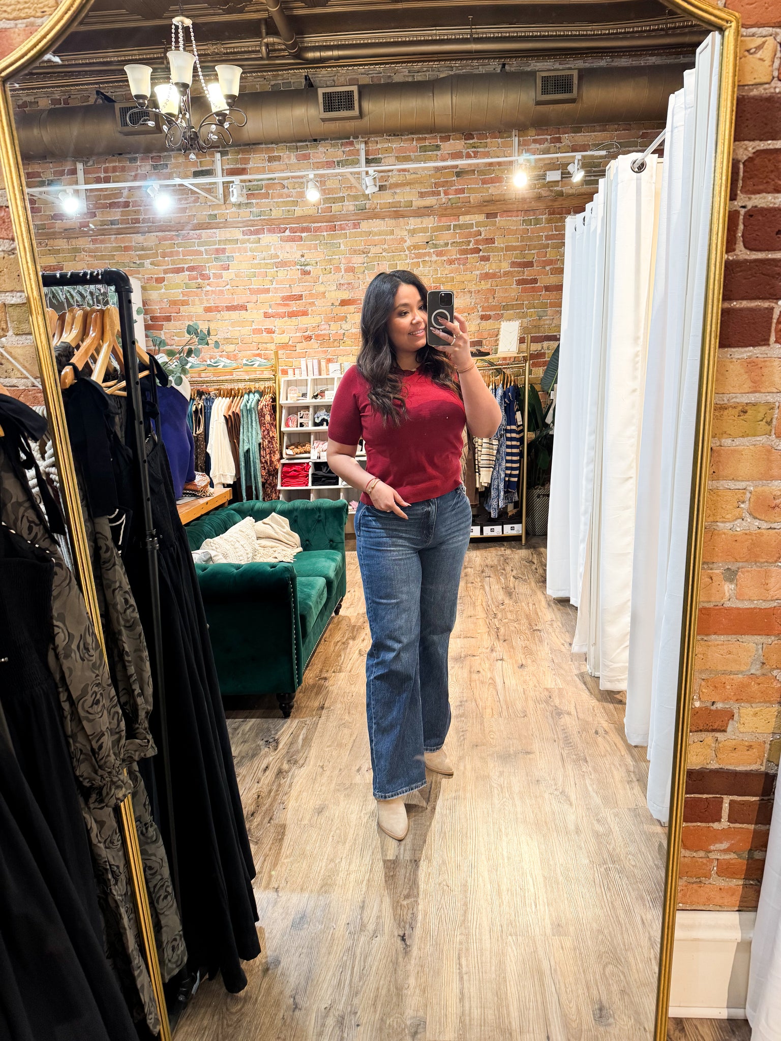 Pam is 5’7, size 29/30 in denim. Wearing a large in the Macie top.
