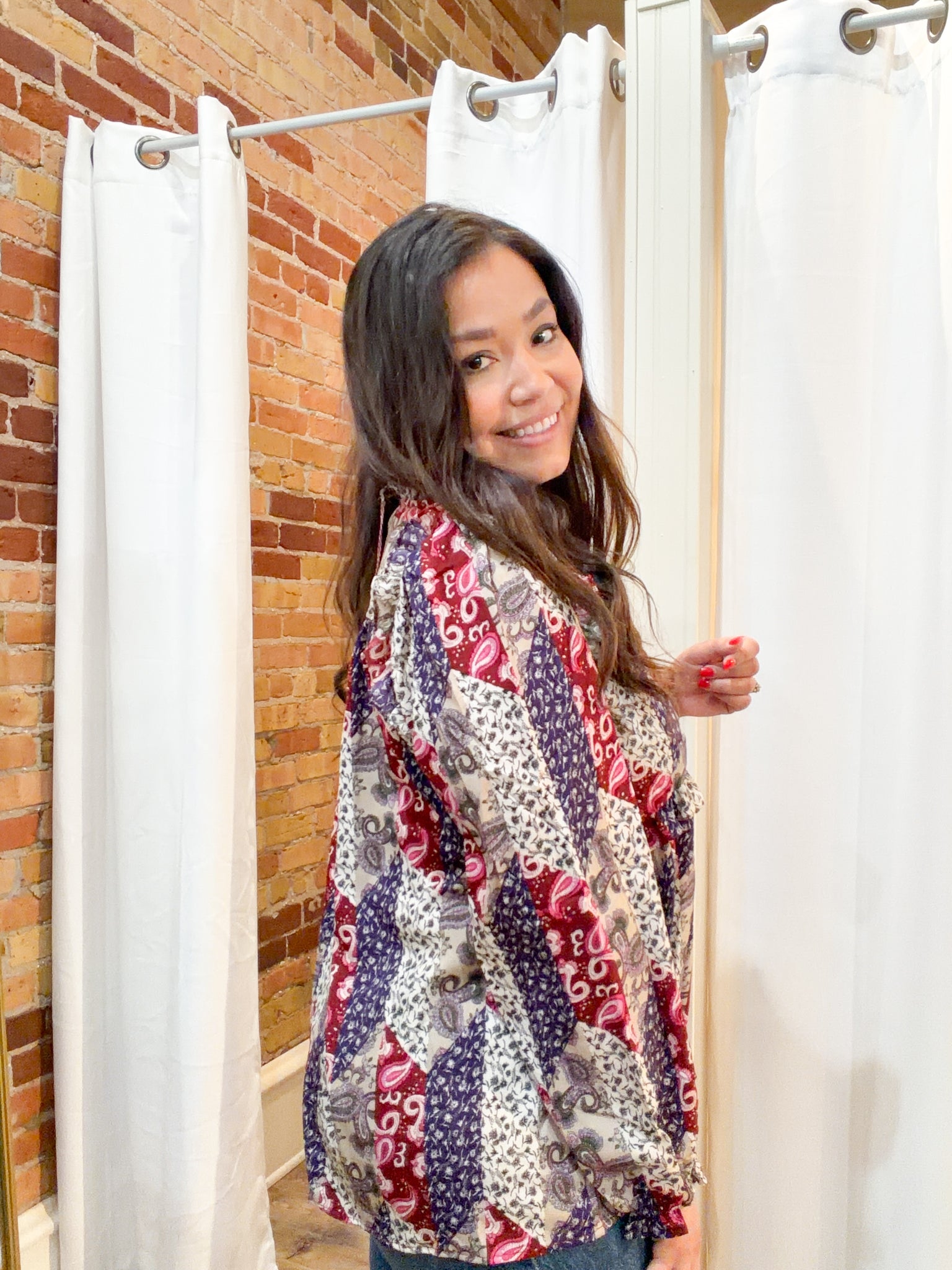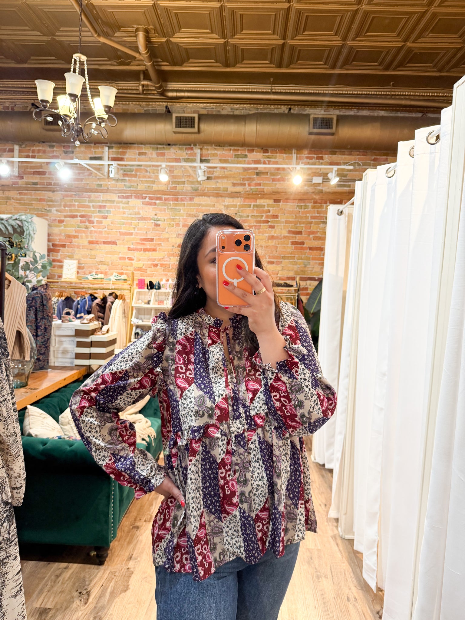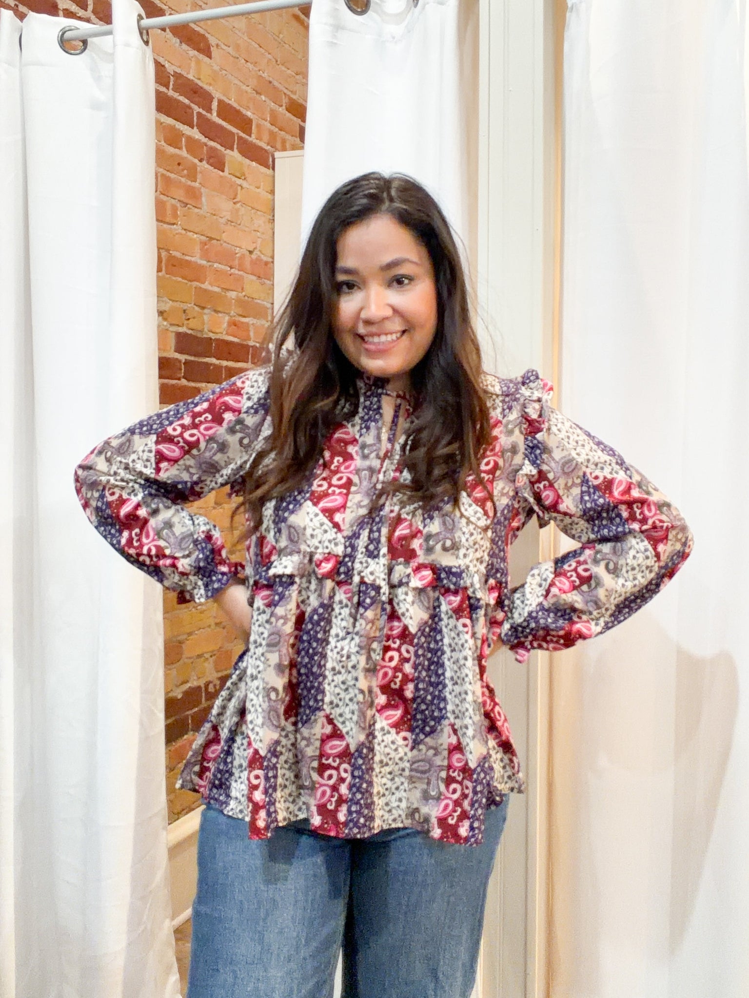 Introducing the Charlotte Ruffle Top in Wine - a stylish addition to your wardrobe. Featuring a round neckline and a mixed print design, this blouse adds just the right amount of ruffle for a touch of femininity. Perfect for any occasion, this top is a must-have for any fashion forward individual.