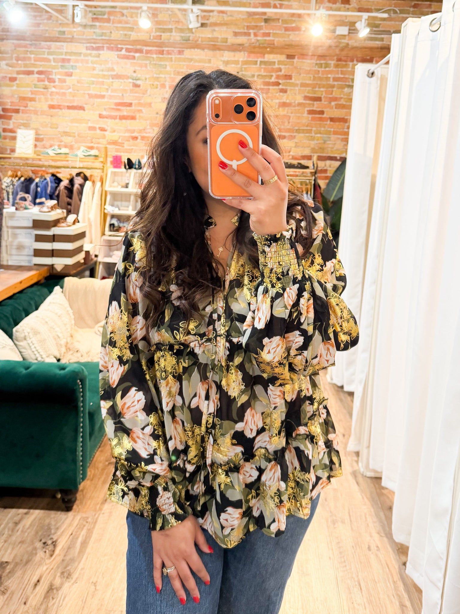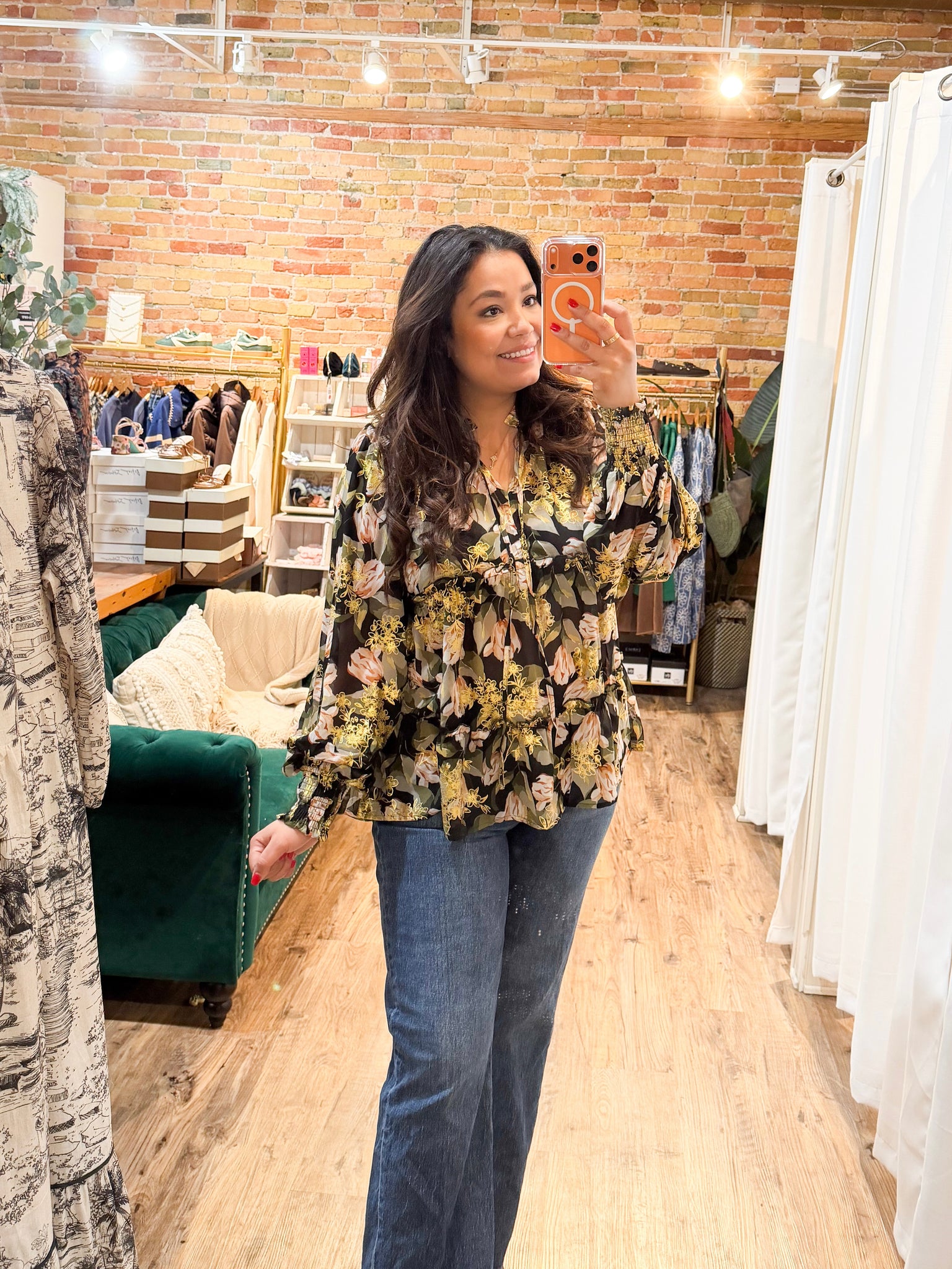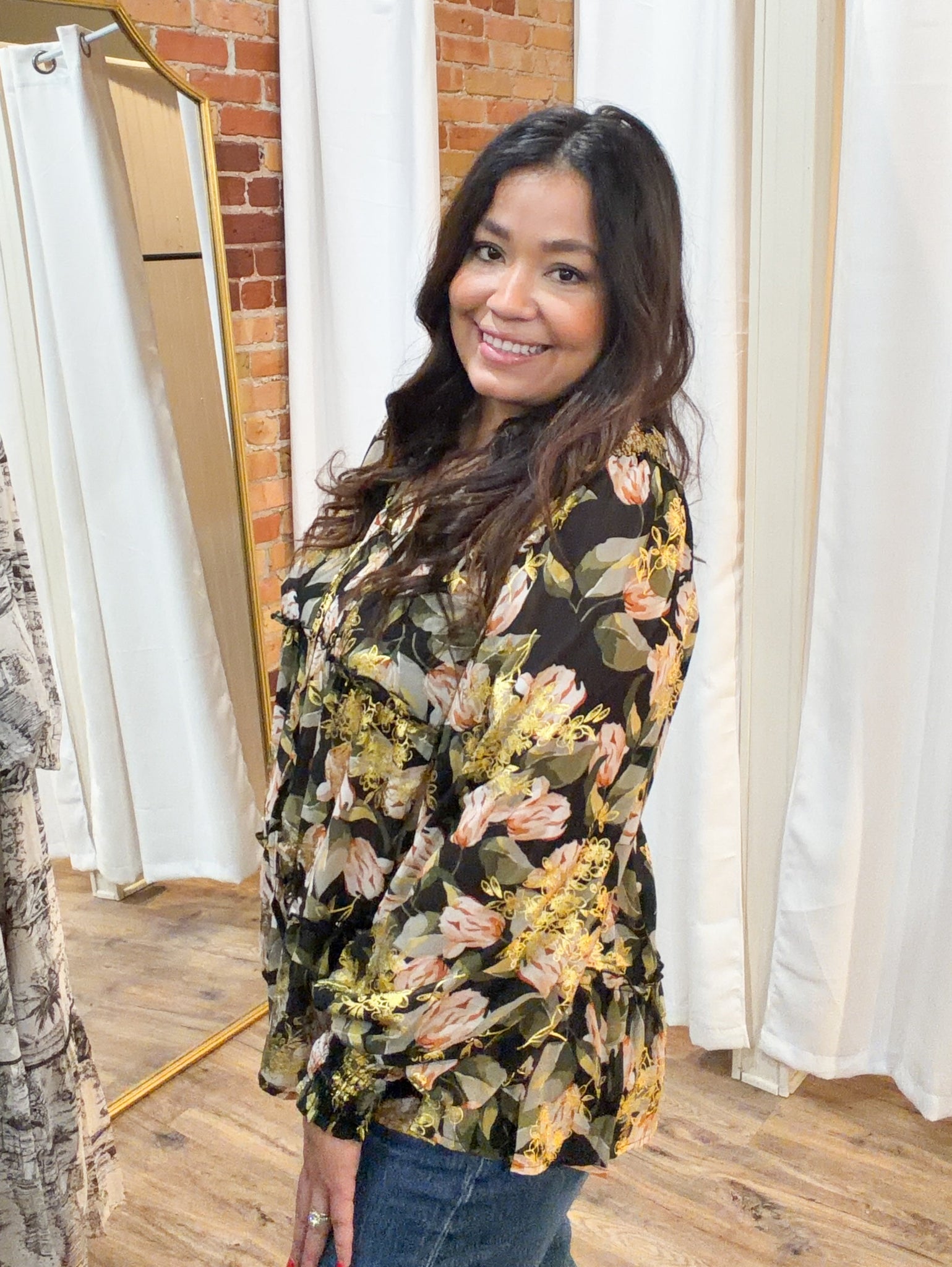 The Serena Top in Black is the perfect addition to your holiday wardrobe. With its lightweight and semi see-through design, it's perfect for any winter outing. The cuffed and balloon sleeves add a touch of style, while the v neckline offers a flattering silhouette. Stay comfortable and fashionable this season with the Serena Top.