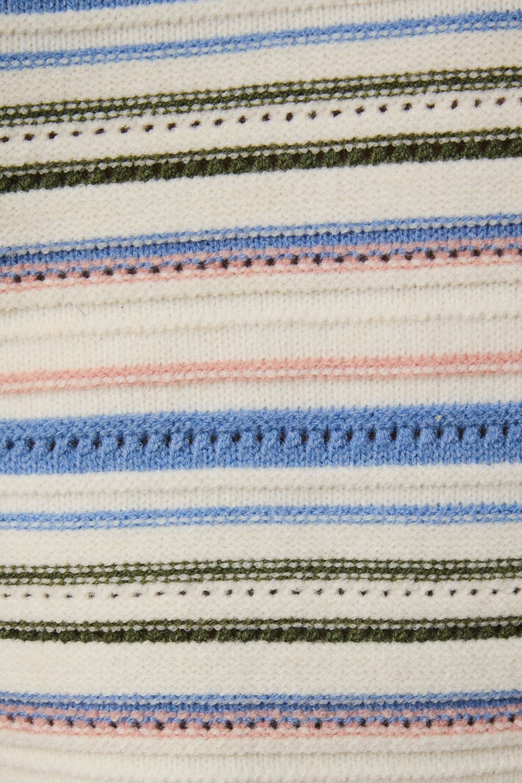 Meadow Lines Striped Sweater This collared striped sweater delivers understated elegance with practical versatility. Crafted from a soft, stretchy blend, it moves with your body for unrestricted comfort throughout the day. The structured collar provides a polished foundation for layering or standalone wear, while the breathable fabric makes it a perfect choice for transitional seasons.
